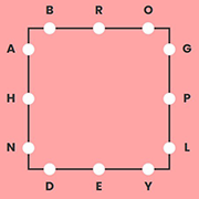Create words by selecting letters from different sides of the square. Every word must contain at least three letters to be accepted.